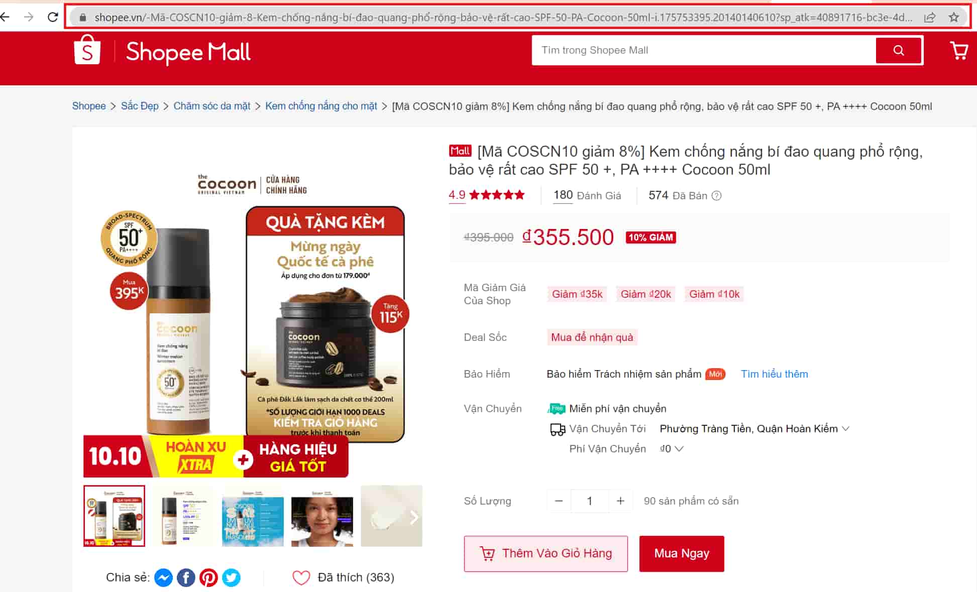 - Bước 1: Copy link sản phẩm kem chống nắng phổ rộng trên Shopee