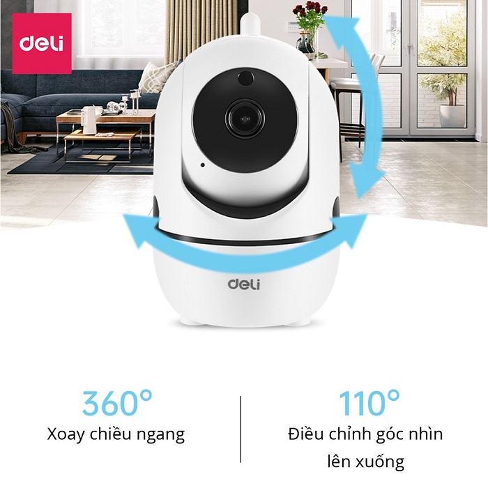 2. Camera Wifi IP Deli Full HD 2M xoay 360 độ giám sát gia đình, văn phòng - ES104