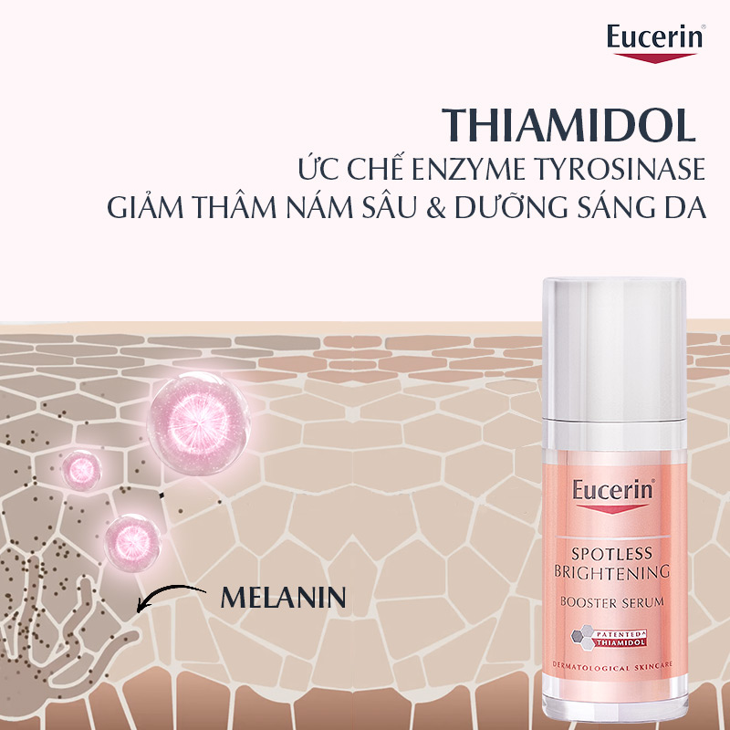 Thiamidol: hoạt chất được cấp bằng sáng chế độc quyền của thương hiệu Eucerin, giúp ức chế quá trình sản sinh melanin ngay tại gốc tế bào sắc tố. Từ đó, giúp giảm tình trạng, sạm da, thâm nám hiệu quả và ngăn ngừa chúng quay trở lại. Hoạt chất Thiamidol được nghiên cứu trong hơn 10 năm bởi hơn 1.000 chuyên gia da liễu toàn cầu và chọn lọc từ hơn 50.000 hợp chất khác nhau.