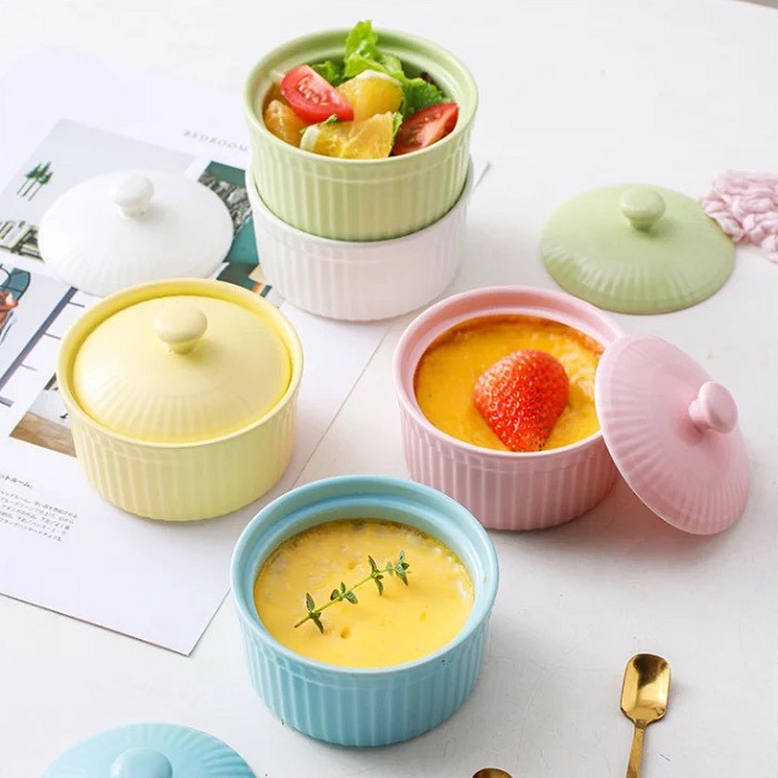 4. Bát sứ ăn dặm trẻ em có nắp đậy Ramenkim