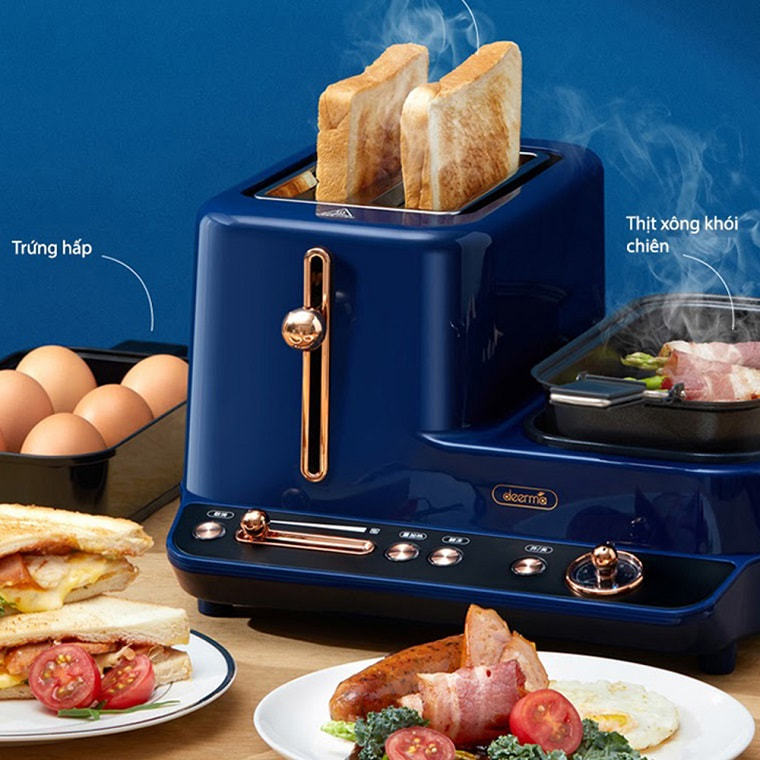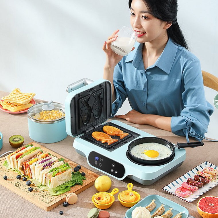 Sản phẩm là sự kết hợp giữa các chức năng nướng bánh mì với chảo rán hay vỉ hấp cung cấp cho bạn một bữa sáng đầy đủ dưỡng chất và nhanh gọn. Sự kết hợp này sẽ giúp tiết kiệm tối đa thời gian làm bữa sáng cho những người bận rộn, đa dạng bữa ăn. Sản phẩm sở hữu màu xanh thanh lịch tăng độ thẩm mỹ cho sản phẩm mà còn có độ bền tốt.