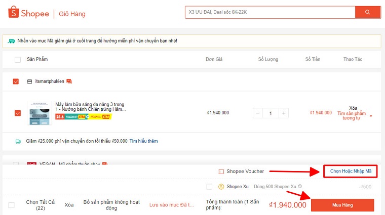 Cách mua máy nướng bánh 3 in 1 trên Shopee để nhận voucher giảm giá