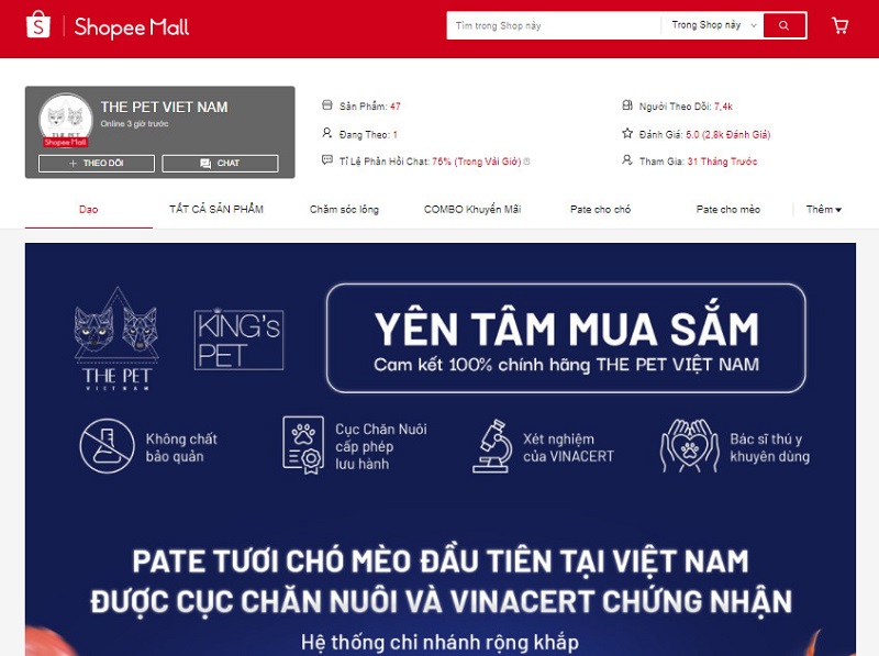 Đây là cửa hàng cung cấp pate tươi cho chó mèo đầu tiên tại Việt Nam được Cục chăn nuôi và Vinacert chứng nhận vô cùng uy tín. Bên cạnh sản phẩm độc quyền pate, The Pet Shop Việt Nam còn bán cả những dòng sản phẩm chăm sóc lông cho thú cưng, giúp chó mèo nhà bạn luôn sạch sẽ và thơm tho. Đồng thời, các combo siêu tiết kiệm vẫn đang được cửa hàng ưu tiên tư vấn cho khách hàng lựa chọn.