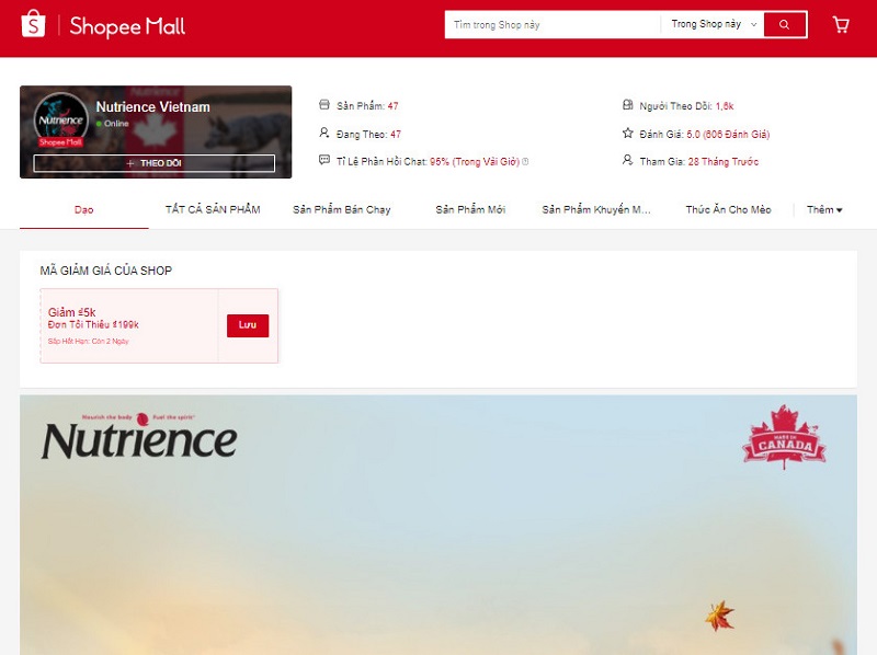 Nutrience Vietnam là cửa hàng chuyên thức ăn hạt thịt đầu tiên tại Việt Nam. Shop là địa chỉ được rất nhiều con sen tìm đến bởi thức ăn tại đây có thành phần thịt cao cấp cùng các dưỡng chất cần thiết khác cho sức khỏe thú cưng. Đặc biệt sản phẩm không có chất tạo màu và chất bảo quản khiến người dùng rất yên tâm sử dụng. Shop được đánh giá 5.0/5.0 nhờ sự uy tín đó.