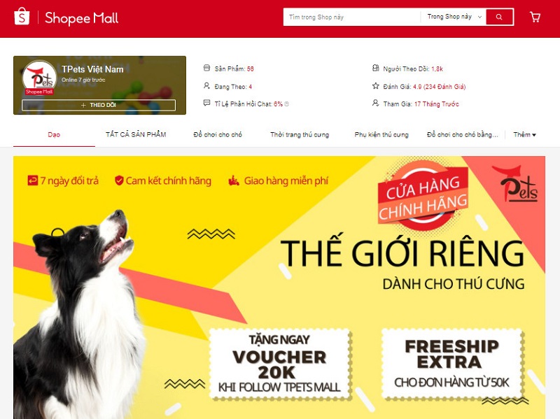 5. TPets Việt Nam - pet shop chuyên phụ kiện cho chó