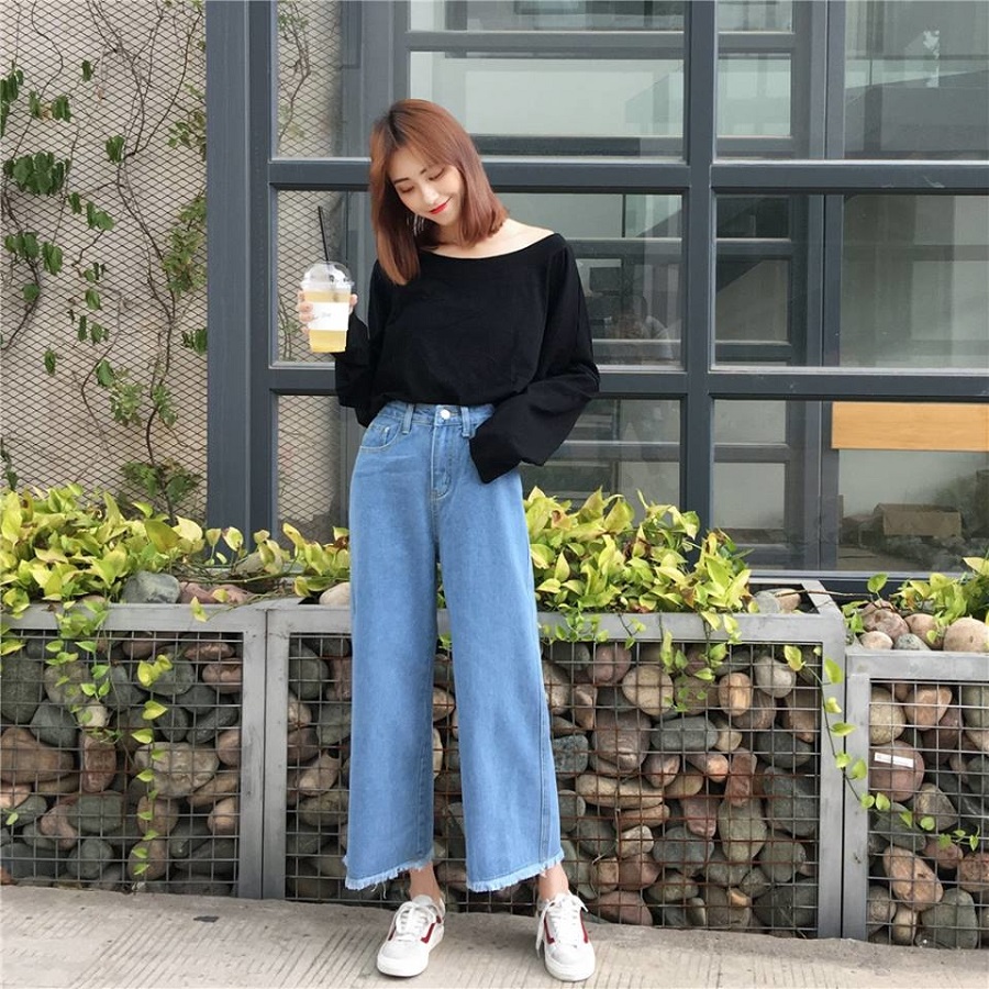Gây bão năm từ đầu năm 2020 với những kiểu quần lưng cao, ống rộng hay ống suông, mẫu quần jeans ống rộng thời thượng chưa bao giờ hết hot, được lăng xê hết cỡ cùng mọi thể loại phong cách, vẫn nằm trong top xu hướng quần jeans nữ năm nay. Em này là vũ khí che khuyết điểm cực kì tốt cho những bạn nữ chân không hoàn hảo, đặc biệt là giúp các nàng chân ngắn tôn dáng, tạo hiệu ứng chân dài hơn cho người diện mang đến sự thoải mái nhưng không kém phần thanh lịch. Áo đóng thùng hoặc croptop sẽ là sự kết hợp tối ưu cùng item này.