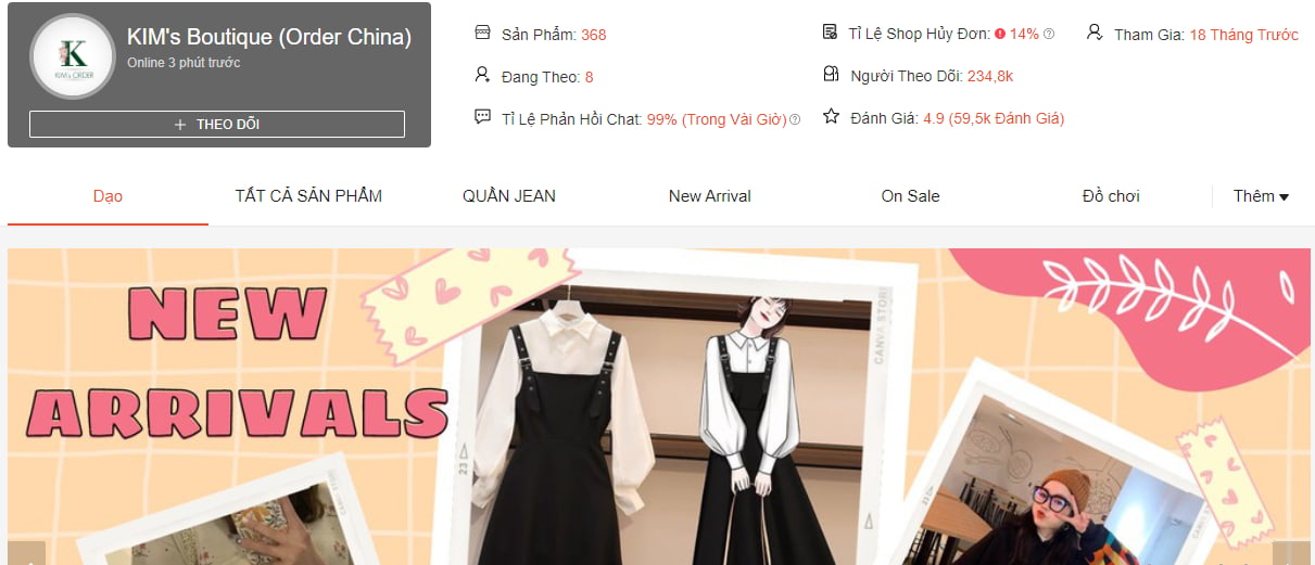 Trang chủ KIM's Boutique trên Shopee. Ảnh: Internet