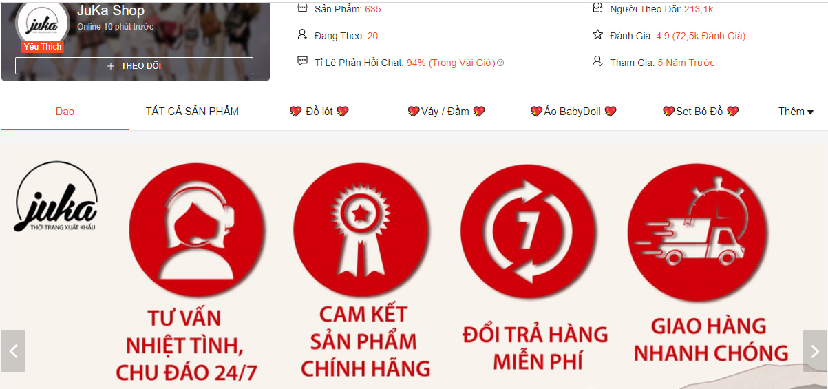 Trang chủ Juka Shop trên Shopee. Ảnh: Internet