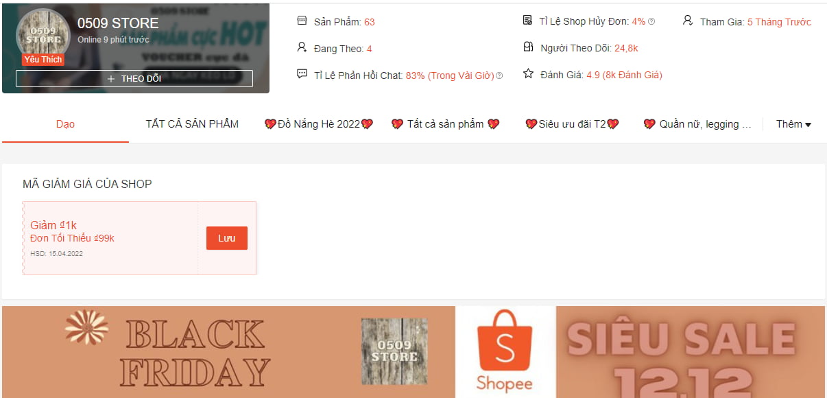 Trang chủ 0509 STORE trên Shopee. Ảnh: Internet