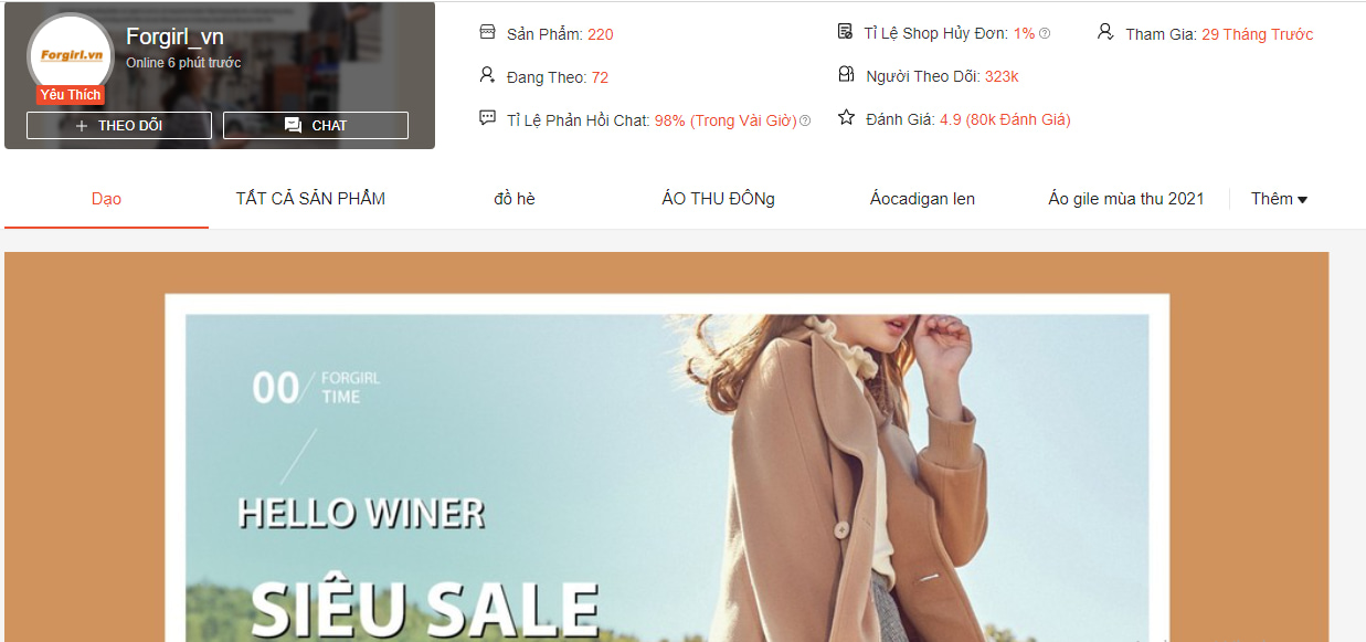 Trang chủ Forgirl_vn trên Shopee. Ảnh: Internet