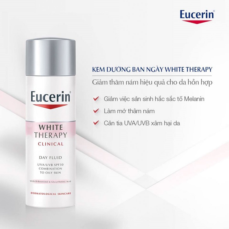 Kem trị nám Eucerin chứa thành phần độc quyền của Eucerin là Thiamazol giúp giảm hình thành sắc tố Melanin, hỗ trợ làm sáng, làm trắng da và làm mờ dần các đốm nâu trên da. Kết cấu kem đậm đặc, thấm nhanh vào da và có thể làm lớp lót trang điểm.