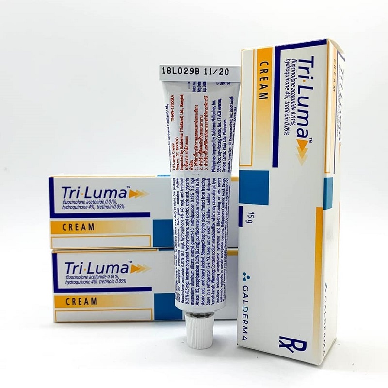Kem trị nám Triluma là sự kết hợp của 3 hoạt chất được FDA công nhận về hiệu quả sử dụng: Fluocinolone acetonide 0.01%, Corticosteroid nhẹ làm giảm viêm; Hydroquinone 4% làm chậm sự hình thành và tổng hợp Melanin giúp da trắng sáng và Tretinoin 0.05%. Kem hỗ trợ làm giảm tình trạng thâm, nám có trên da, làm trắng sáng, mềm mịn da và chống oxy hóa. Sản phẩm không dùng lên vết thương hở và phải thoa ít nhất 30 phút trước khi đi ngủ.