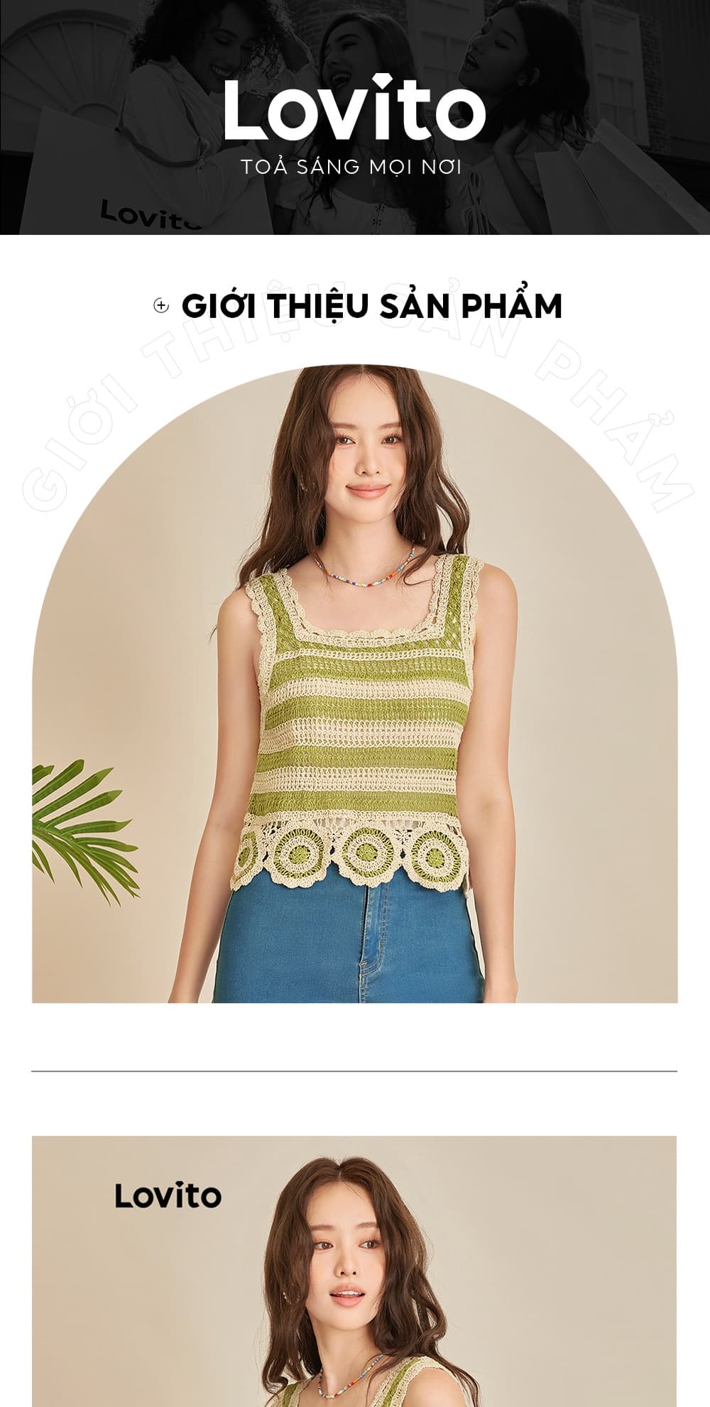 Áo LOVITO dệt kim cổ vuông dáng ngắn họa tiết kẻ sọc có chất liệu polyester nên rất mềm mịn và thoáng mát. Form áo ôm vừa vặn, tôn dáng, mặc lên cực xinh. Họa tiết kẻ sọc nổi bật tạo điểm nhấn giúp bạn tự tin mỗi khi diện ra ngoài.