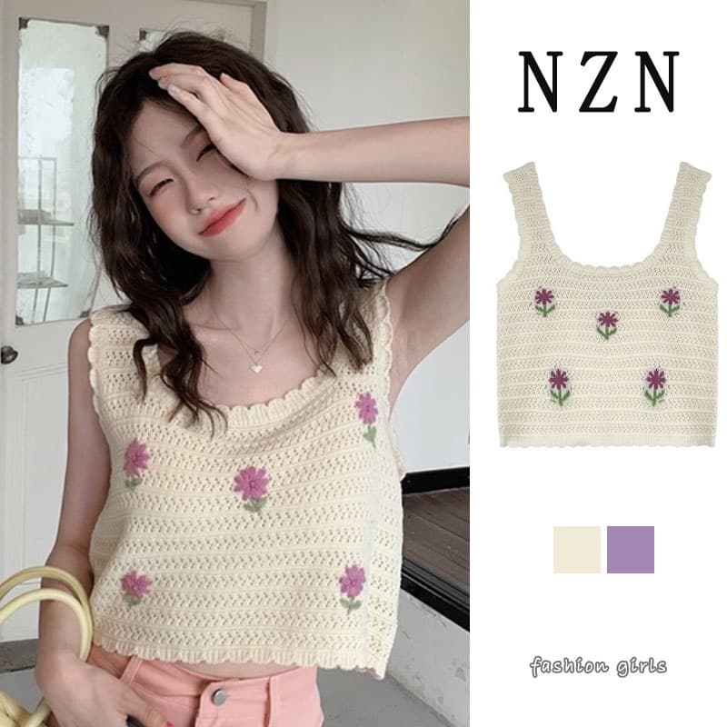 - Áo kiểu NZN dệt kim hai dây dáng ngắn