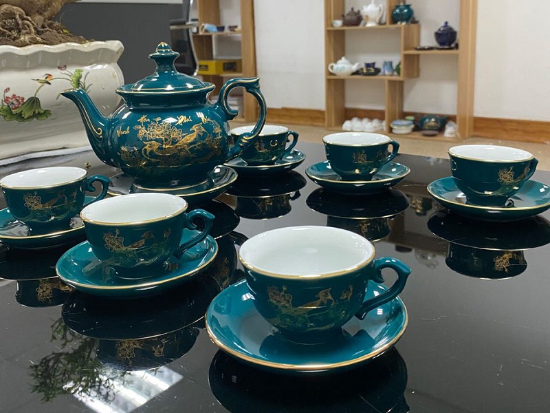 2. Bộ ấm chén Bát Tràng cao cấp - Vinh Hoa Phú Quý xanh Mallard