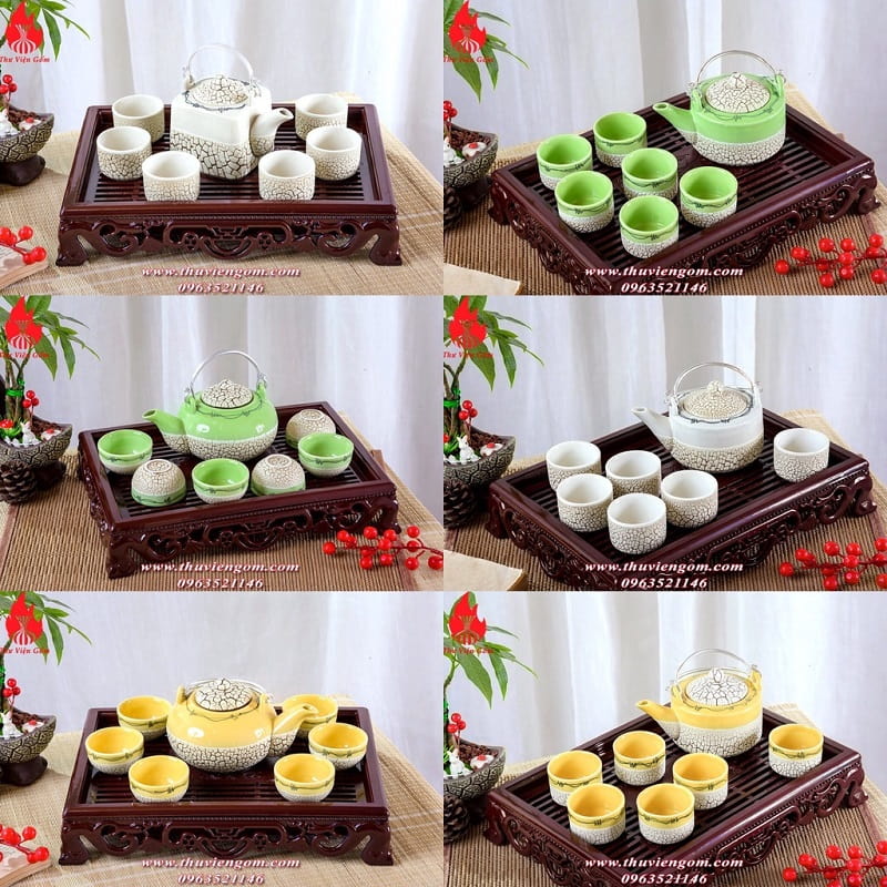 Bộ ấm chén Bát Tràng bao gồm 6 chén, 6 đĩa chén đơn, 1 ấm, 1 đĩa ấm đơn và 1 khay ấm chén (nếu muốn) với 12 mẫu mã, họa tiết đa dạng cho bạn lựa chọn. Sản phẩm là hàng chuẩn loại 1 và cam kết 100% thủ công mỹ nghệ của làng gốm cổ truyền Bát Tràng. Họa tiết có trên bộ ấm chén đều là họa tiết đơn giản nhưng vô cùng tinh tế, trang trọng, phù hợp với không gian phòng khách nhà bạn.