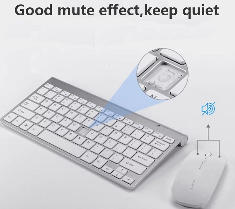 Bàn phím Bluetooth không dây mini có độ dày của bàn phím chỉ 6mm và trọng lượng nhẹ chỉ 200g, có thể dễ dàng mang đi công tác. Các kí tự trên bàn phím được khắc laser chống mờ và được thiết kế giảm thiểu tiếng ồn khi gõ. Bộ sản phẩm phù hợp với hầu hết hệ điều hành Window, MAC,... Chuột sử dụng chip truyền tốc độ cao, nhanh nhạy, kết nối nhanh chóng.