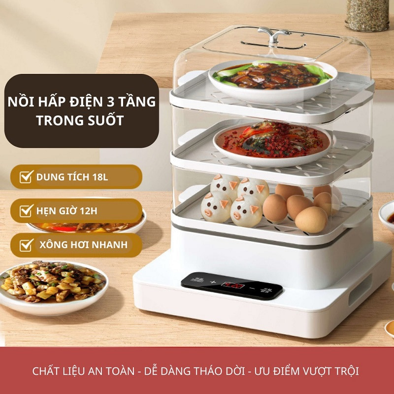 1. Nồi hấp điện 3 tầng trong suốt đa năng