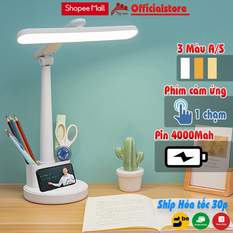 6. Đèn học chống cận Sipanic để bàn tích điện cảm ứng 3 chế độ ánh sáng bảo vệ mắt