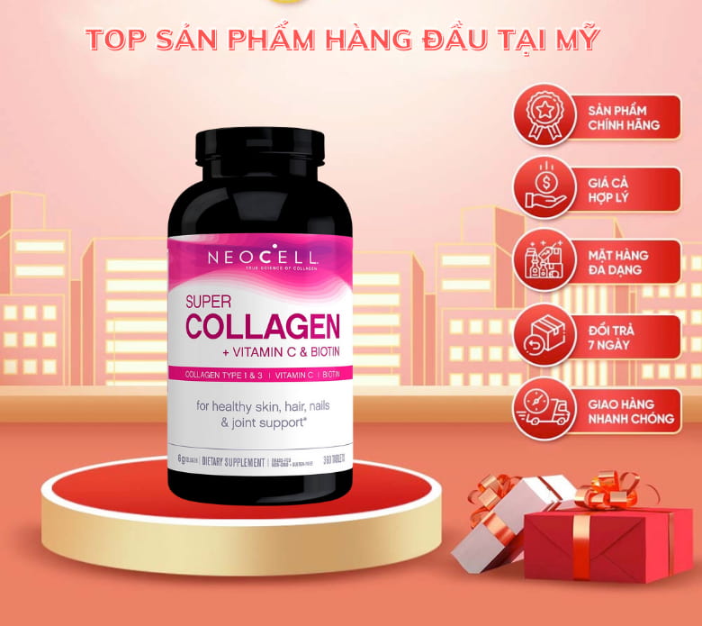 Collagen Neocell là sản phẩm có chiết xuất vitamin C từ nam việt quất, quả lựu, trà xanh,… và các chiết xuất khác. Đây là dòng collagen dạng uống rất được yêu thích bởi nó có vị lựu, mùi thơm nhẹ rất dễ uống. Không chỉ cải thiện sức khỏe làn da mà Collagen Neocell dạng uống của Mỹ này còn có tác dụng duy trì sức khỏe cơ, khớp, xương, hệ tiêu hóa và cả móng tay, tóc rất hiệu quả.