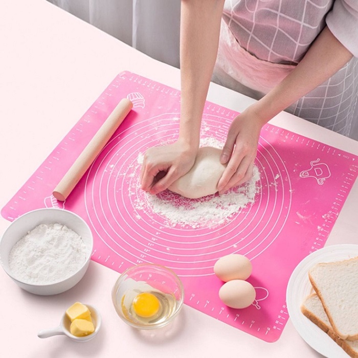 Đây sẽ là dụng cụ làm bánh tuyệt vời cho những bạn muốn tự làm những chiếc bánh nhưng lại không biết chia tỉ lệ thế nào cho hợp lý nhất. Với chất liệu silicon dẻo, không mùi, không gây độc hại cho người dùng và trẻ nhỏ, chống bụi, độ bền cao, không thấm nước, dễ dàng làm sạch sau khi sử dụng. Có thể được sử dụng một cách an toàn trong lò nướng, lò lò vi sóng, máy rửa chén và tủ lạnh, phù hợp làm các loại bánh khác nhau. Phân chia chiều dài và đường kính giúp bạn dễ dàng định lượng, nhào và cán bột; sau khi dùng có thể cuộn lại và cất gọn dễ dàng, gỡ bột nhanh chóng tiết kiệm thời gian.