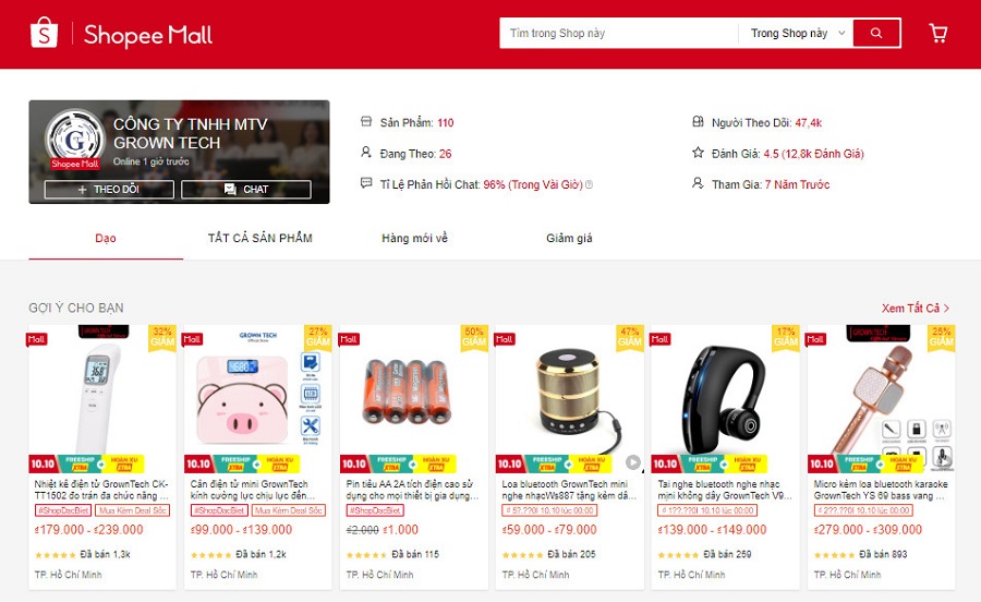 >> Xem nhanh: Mã giảm giá Công ty TNHH MTV Grown Tech trên Shopee hôm nay