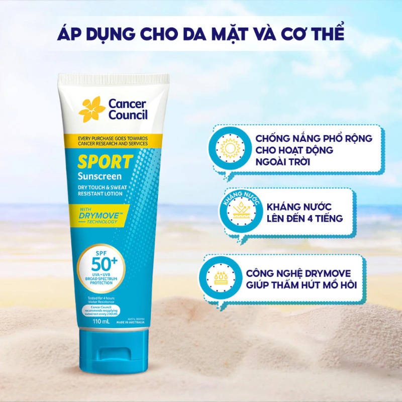 - Kem chống nắng dành cho hoạt động thể thao Cancer Council SPF50+ 110ml