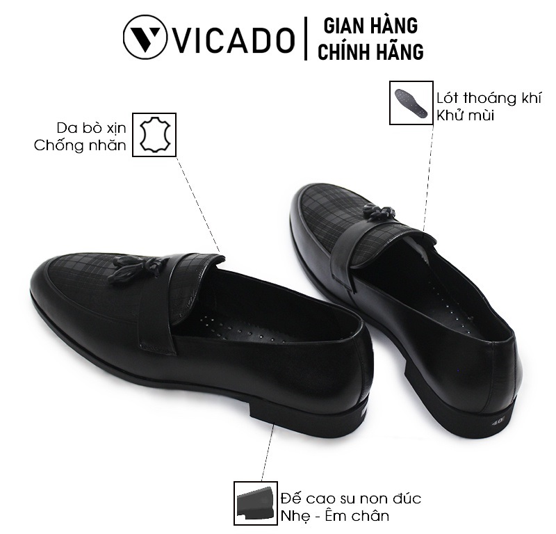 Giày lười nam tăng chiều cao của Vicado có đế 3cm, thiết kế bí mật, thoải mái và nhẹ nhàng. Đế cao su non đúc cao cấp, làm nổi bật tính sang trọng và vẻ đẹp của đôi giày. Thiết kế da bò cao cấp nguyên tấm, được đánh bóng cho nên vô cùng bền bì, chống nước, chống bụi một cách tốt nhất.