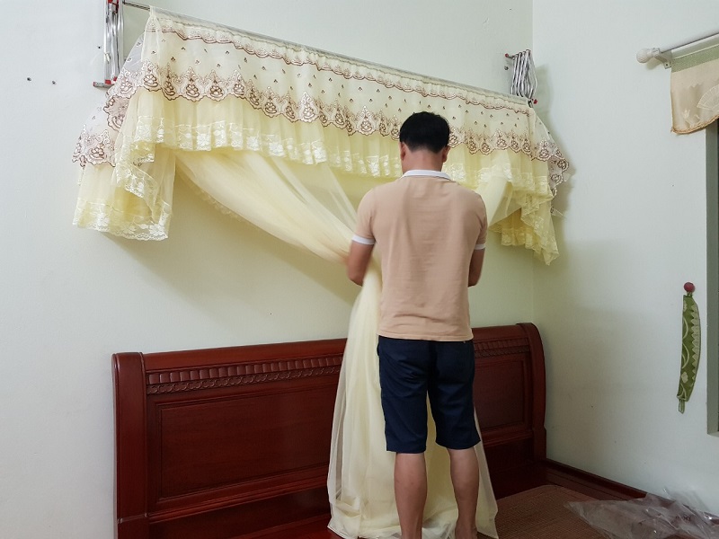 Bạn đang muốn tìm một chiếc màn xếp thu gọn mà không muốn các thanh màn khoan vào tường thì đây là một sản phẩm dành cho bạn. Chiếc màn sẽ lắp vào giường bạn mà không khoan nên bạn có thể di chuyển hoặc thay đổi vị trí bất cứ đâu mà bạn muốn. Khung màn với chất liệu inox 32m và vải màn được làm bằng vải voan nên sẽ đem đến cho bạn sự chắc chắn và sự sang trọng cho căn phòng của bạn.
