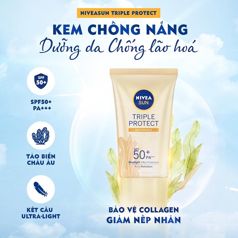 - Kem chống nắng Nivea Sun Triple Protect Anti Wrinkle SPF50+ PA+++ 40ML - 85546