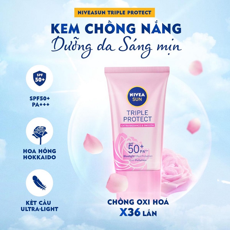 - Kem chống nắng Nivea Sun Triple Protect Extra Radiance & Smooth SPF50+ PA+++ 40ml - 85536