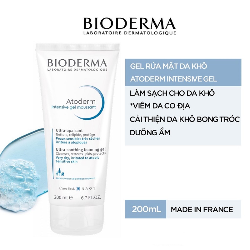 2.7. Kem làm sạch dịu nhẹ cho da rất khô, nhạy cảm dễ bị kích ứng Bioderma Atoderm Intensive Gel Moussant - 200ml