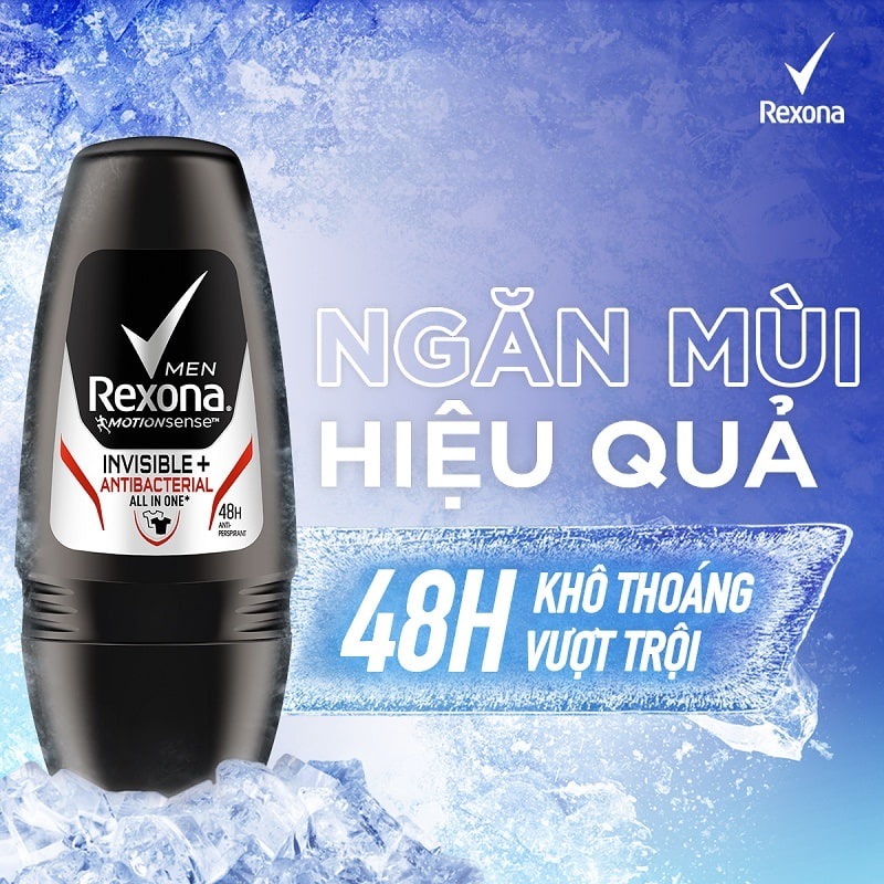 Một nhãn hàng uy tín, khả năng giữ mùi lên đến 48 giờ, giúp làn da dưới cánh tay luôn khô thoáng, thơm tho. Lăn khử mùi Rexona Men được kết hợp công nghệ MotionSense đây là công nghệ hiện đại giúp giảm tiết mồ hôi và ngăn mùi cảm ứng hiệu quả. Mỗi khi bạn di chuyển hoặc ra mồ hôi nhiều thì sẽ có hàng triệu hàng lưu hương sẽ dần toả ra, giữ thơm tho trong suốt 48 tiếng. Ngoài việc ngăn mùi cho cơ thể, lăn khử mùi Rexona Men còn giúp ngăn ngừa vi khuẩn phát triển và ngăn ngừa việc để lại vết ố vàng trên áo, giúp các đấng mày râu trở nên tự tin hơn.