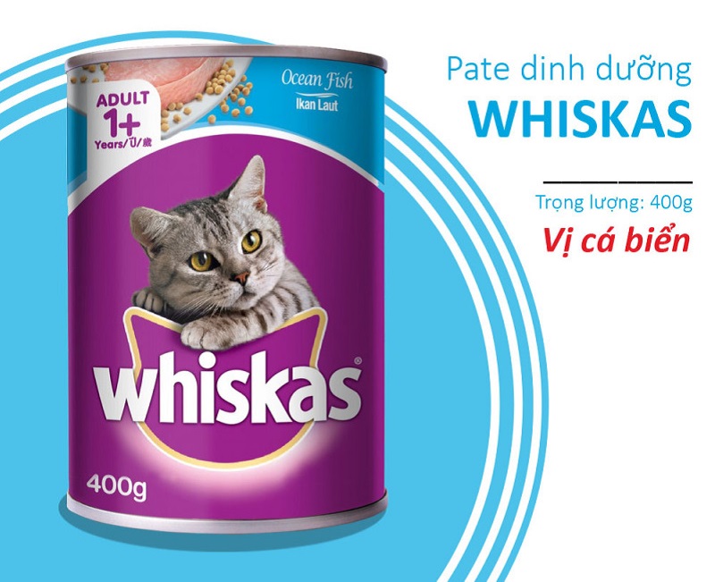 Pate cho mèo Whiskas lon bổ sung nhiều chất dinh dưỡng cần thiết cho mèo như Omega 3&6, Axit béo, kẽm, Vitamin A, Taurin và một số khoáng chất, Vitamin khác giúp nuôi dưỡng bản năng tự nhiên của mèo. Sản phẩm phù hợp cho những bé mèo từ 1 năm tuổi trở lên nhé. Bạn có thể trộn pate cùng với cơm hoặc hạt để làm tăng thêm mùi vị và kích thích các bé ăn nhiều hơn.