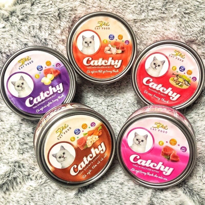Pate mèo Catchy 5Plus dạng lon được sản xuất theo tiêu chuẩn chất lượng BRC do Anh Quốc công nhận. Hộp có nắp mở tiện lợi, dễ sử dụng. Sản phẩm dạng thạch mềm, dễ ăn và kích thích vị giác của các bé mèo. Đồng thời, sản phẩm cung cấp nguồn Protein tự nhiên dễ hấp thu, đảm bảo đầy đủ chất dinh dưỡng, cải thiện hệ tiêu hóa và giúp xương chắc khỏe, tăng sức đề kháng cho thú cưng.