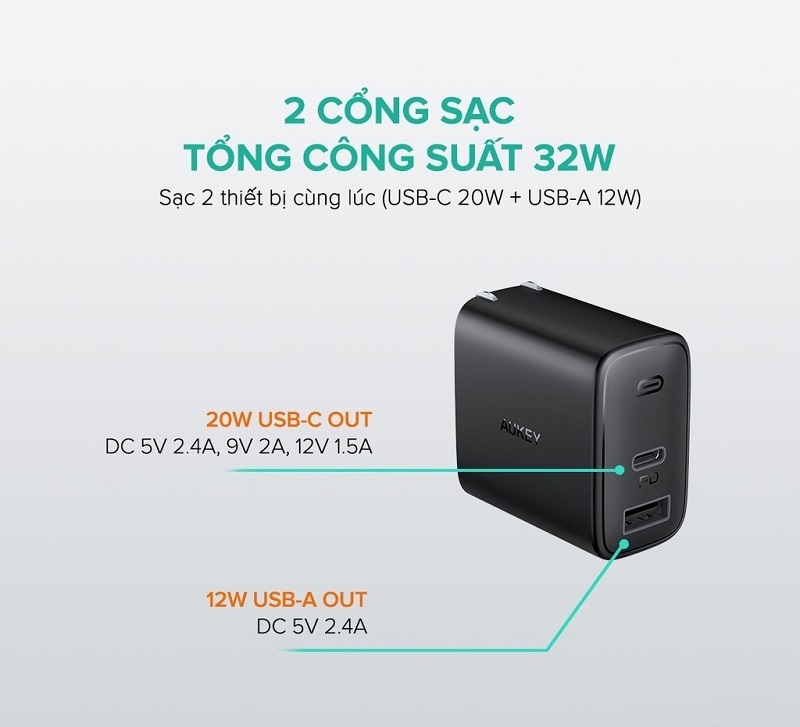 6. Cốc sạc nhanh AUKEY PA-F3S 32W PD 20W