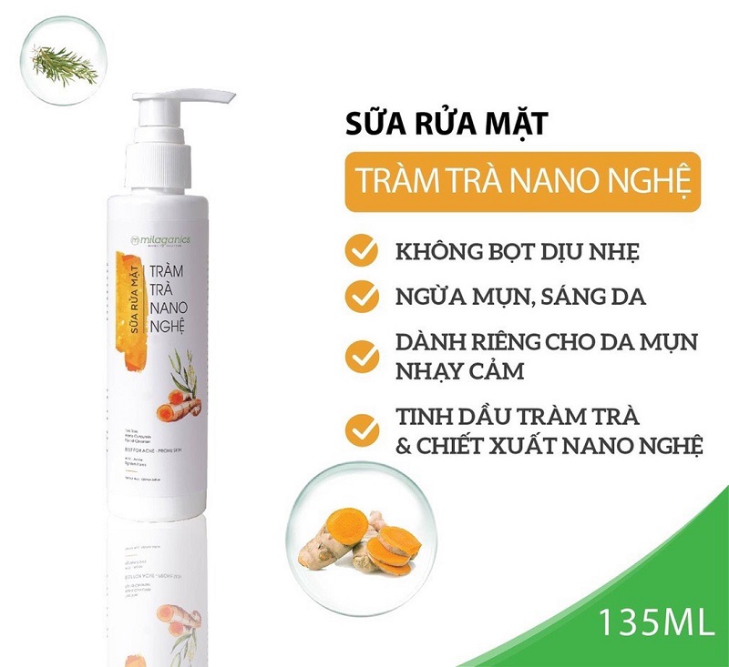 7. Sữa rửa mặt tràm trà nano nghệ làm sạch chuyên sâu cho da Milaganics 135ml