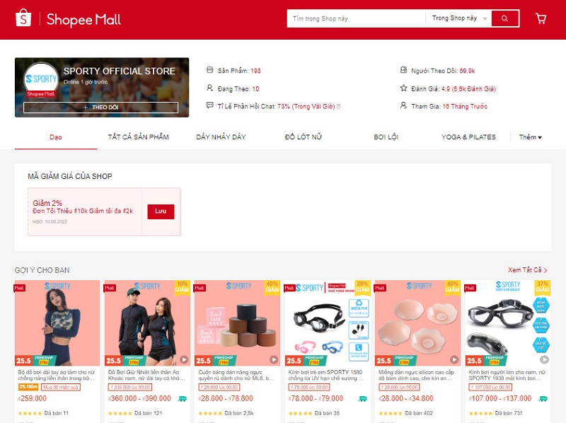 Sporty Official Store là shop bán bikini theo kiểu năng động, sảng khoái, khoe được đường cong gợi cảm . Mẫu đồ bơi của Sporty Official Store giúp bạn trở nên quyến rũ và xinh đẹp hơn. Sporty Official Store chỉ bán hàng chính hãng, hàng có thương hiệu nên bạn có thể yên tâm khi lựa chọn sản phẩm thương hiệu này.