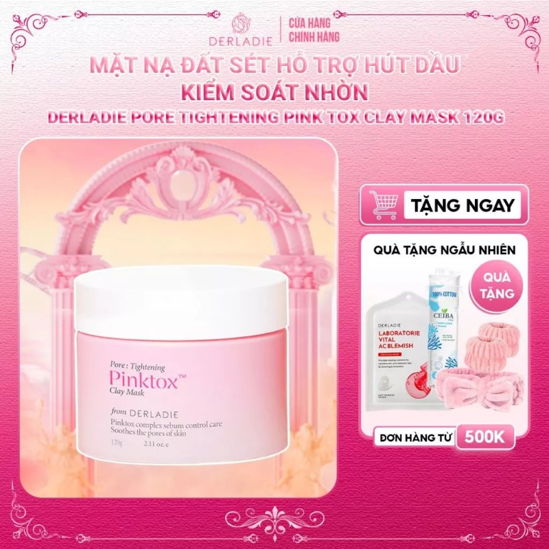 Derladie Pore Tightening Pink Tox Clay Mask nổi bật với khả năng kiểm soát dầu và se khít lỗ chân lông hiệu quả, rất phù hợp cho routine chăm sóc mặt nạ đất sét cho da dầu mụn. Sản phẩm thường chứa đất sét kết hợp cùng các thành phần làm dịu và detox da, giúp loại bỏ bã nhờn dư thừa mà không làm khô căng da. Ngoài ra, kết cấu mịn nhẹ giúp dễ tán và mang lại cảm giác thư giãn khi sử dụng, phù hợp cho những ai muốn vừa làm sạch sâu vừa chăm sóc da nhẹ nhàng tại nhà.