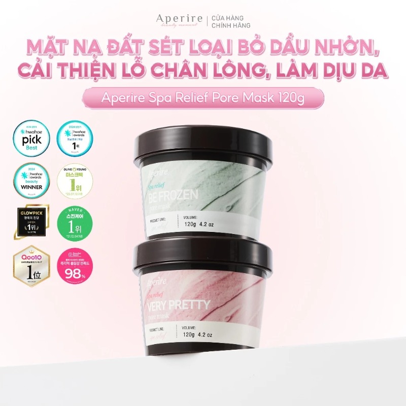 Mặt nạ đất sét loại bỏ dầu nhờn, thu nhỏ lỗ chân lông, làm dịu da Aperire Spa Relief Pore Mask