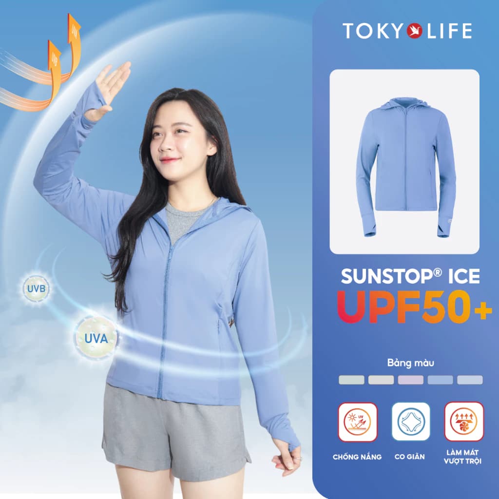 Dòng SunStop trứ danh từ TokyoLife ứng dụng công nghệ sợi chống nắng ưu việt, đạt chỉ số UPF 50+ giúp chặn đứng 98% tia UV gây hại. Với chất vải mỏng nhẹ, co giãn 4 chiều và khả năng làm mát tức thì, đây là sự lựa chọn hàng đầu cho phái đẹp để bảo vệ làn da tối đa mà vẫn luôn cảm thấy thoáng mát, dễ chịu dưới cái nắng hè gay gắt.