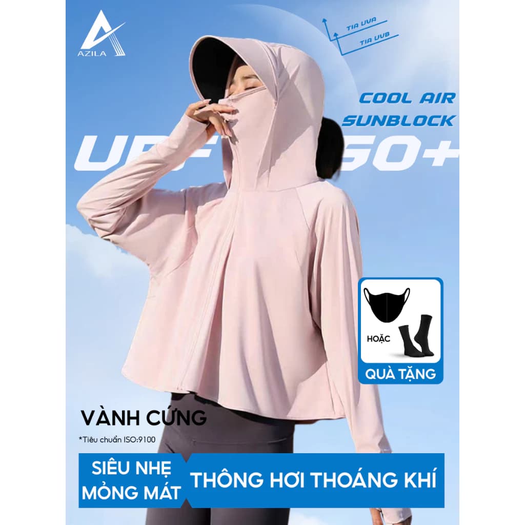 Thiết kế cánh dơi rộng rãi mang lại sự thông thoáng tuyệt đối, không lo bết dính mồ hôi hay gò bó khi mặc ngoài những bộ đồ có tay áo phồng. Với chất liệu thun lạnh mềm mịn và chỉ số UPF 50+, AZILA giúp làm dịu da tức thì và bảo vệ bạn toàn diện ngay cả trong những ngày hè oi ả nhất của năm 2026.