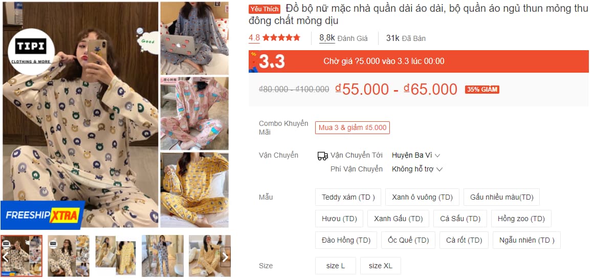 Bộ đồ nữ mặc nhà thu đông vải thun mỏng, in họa tiết của Tipiship_beauti có đến hơn 31k lượt bán. Đây là một con số gây sốc mà ít ai ngờ tới được. Shop Chưa kể, Tipishop_beautie là một shop đã có thời gian bán hàng trên Shopee đến 4 năm, có lượt 731k lượt theo dõi và lượt đánh giá cực cao. Từ đây có thể thấy, đây là một shop bán hàng uy tín, chất lượng và rất xứng đáng để trải nghiệm.