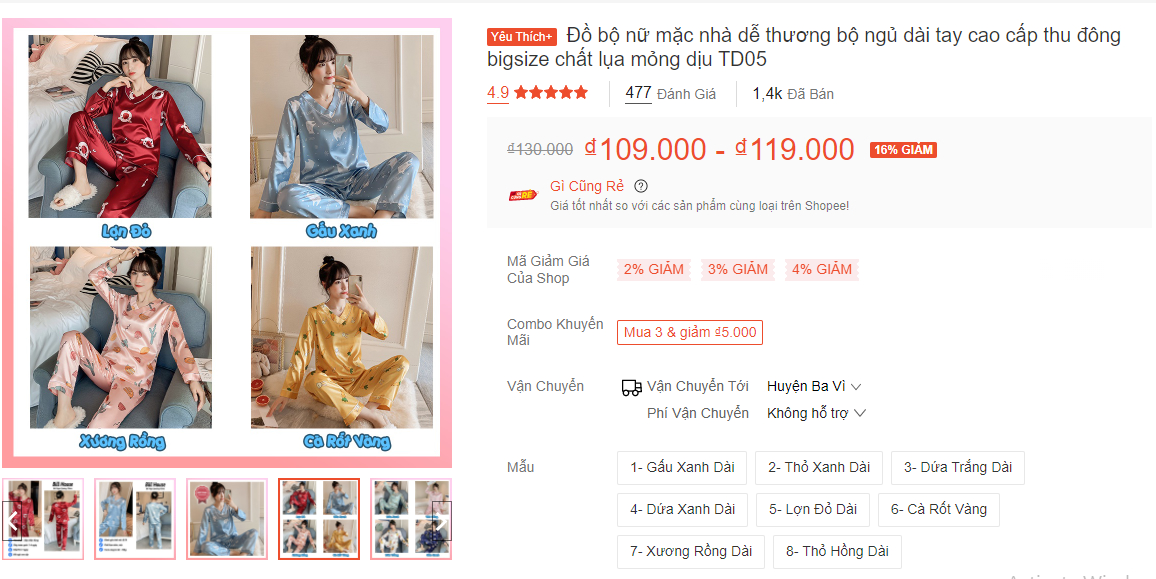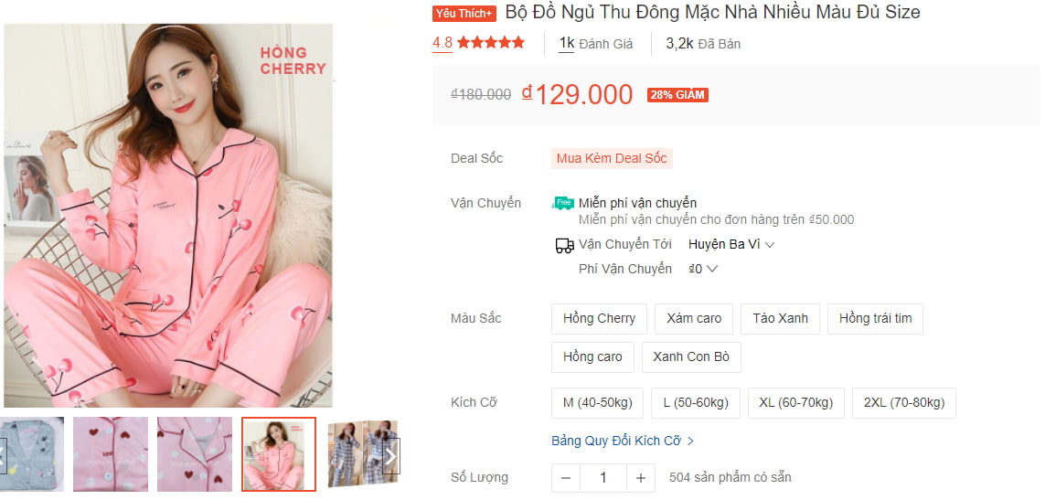 2. Hướng dẫn các bước đặt mua bộ đồ nữ mặc nhà trên Shopee