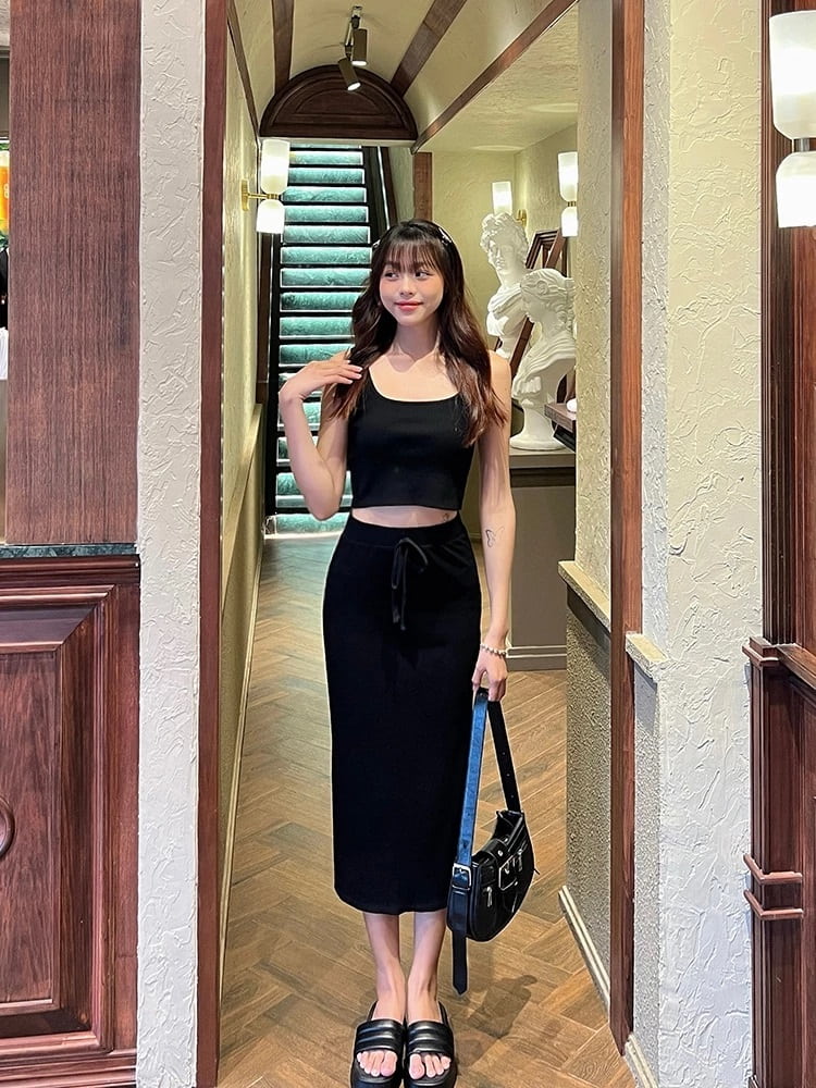 Một trong những item không thể thiếu trong danh sách chân váy basic chính là chân váy xếp ly nhỏ phối nơ. Thiết kế xếp ly nhẹ nhàng giúp tạo cảm giác thon gọn, nữ tính, trong khi chi tiết nơ tinh tế làm điểm nhấn giúp bộ trang phục thêm phần duyên dáng. Dễ dàng phối cùng áo blouse, áo len hoặc cardigan, đây là lựa chọn hoàn hảo cho những cô nàng yêu thích phong cách ngọt ngào.