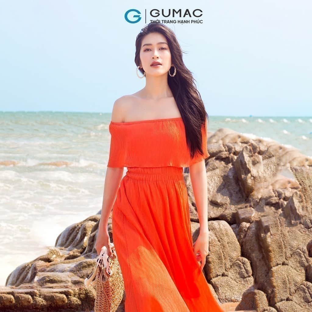 Em đầm maxi cuối cùng mà chúng tôi gợi ý cho phái đẹp là chiếc đầm GUMAC DD05031-DD05090. Váy có thiết kế maxi, trễ vai, gợi cảm, thanh lịch và đầy sự sang trọng. Chất liệu đầm bằng vải voan co giãn, thoáng mát với 2 tông màu trắng và cam để các nàng lựa chọn.