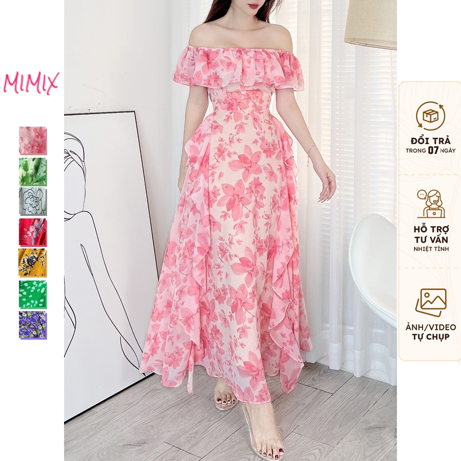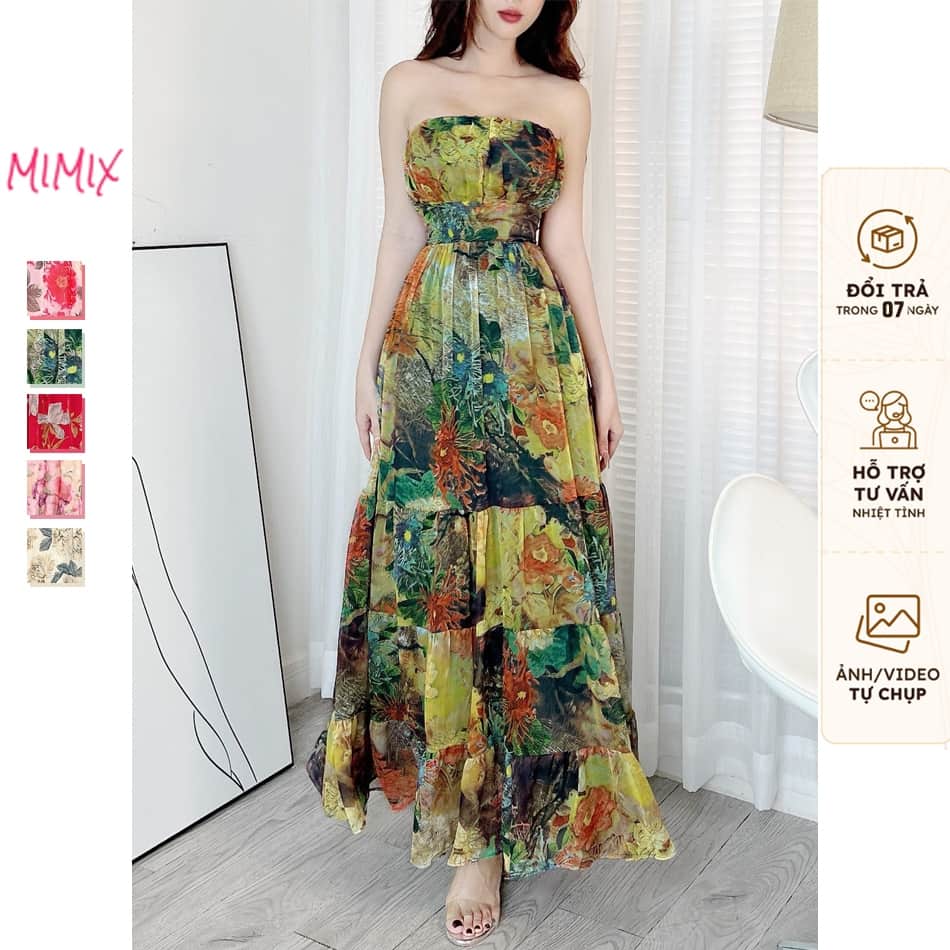 Đầm maxi 2 dây tầng, họa tiết in hoa, có mút ngực MIMIX BW7235