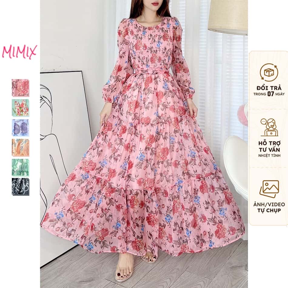 Đầm maxi họa tiết hoa, tay dài bo chun MIMIX CA9250