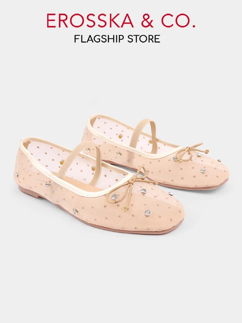 - Giày búp bê nữ đế bệt lưới chấm bi phối đá kèm nơ