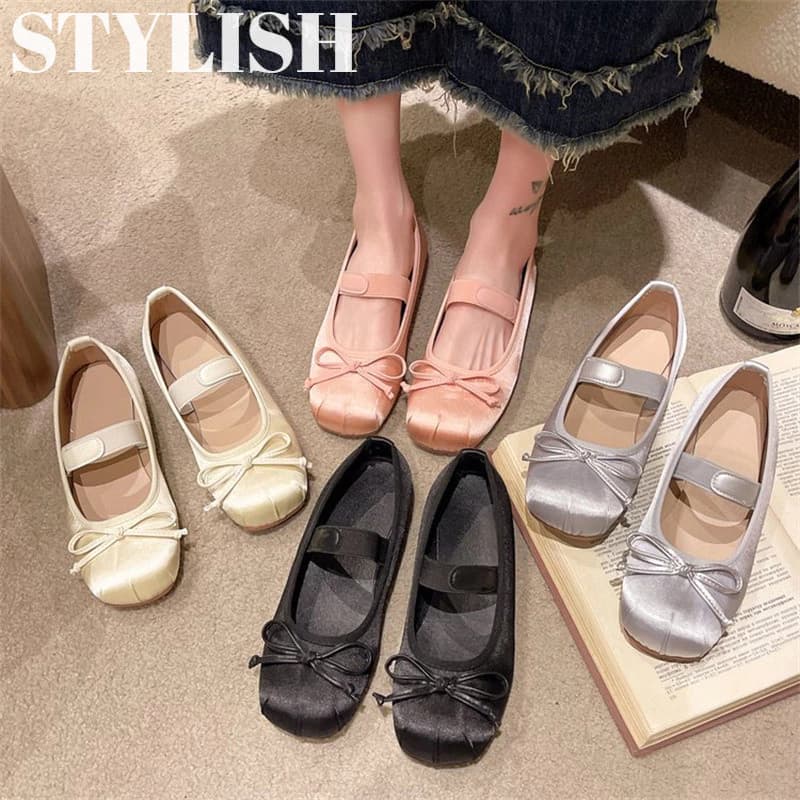 Giày bệt nữ đính nơ mang đến vẻ ngoài thanh lịch và hiện đại hơn so với giày búp bê. Phần mũi nhọn giúp chân trông dài hơn.